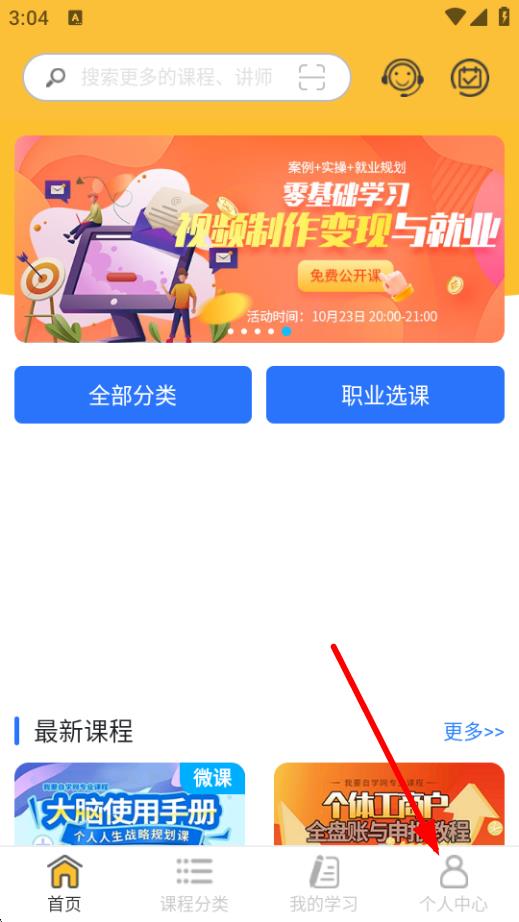 1、在我要自學(xué)網(wǎng)的首頁,點擊個人中心,進(jìn)入個人中心的頁面。