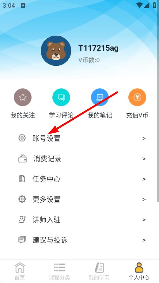 2、在個人中心頁面,點擊賬號設(shè)置,進(jìn)入賬號設(shè)置的界面。