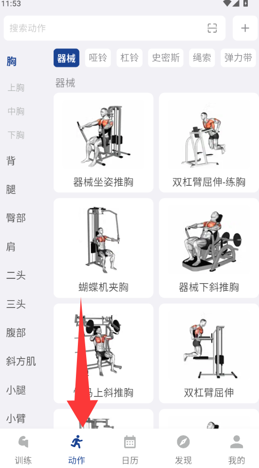 4、點(diǎn)擊頁面下面的動(dòng)作可以看到標(biāo)準(zhǔn)的動(dòng)作。