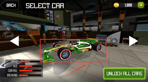 3、在車庫中挑選心儀的戰(zhàn)車,每款方程式賽車在極速、過彎等參數(shù)上存在明顯差異。