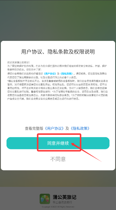 1、首次啟動應(yīng)用時,請?jiān)敿?xì)查閱服務(wù)條款與隱私政策,確認(rèn)后點(diǎn)擊"同意并繼續(xù)"。