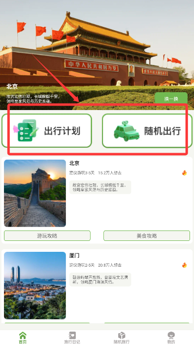 2、主界面提供"行程規(guī)劃"與"驚喜旅程"等入口,輕松開啟個性化出游安排。