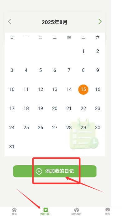 3、記錄旅途見聞可進(jìn)入"游記本",選擇日期后點(diǎn)擊"新建游記"即可撰寫。