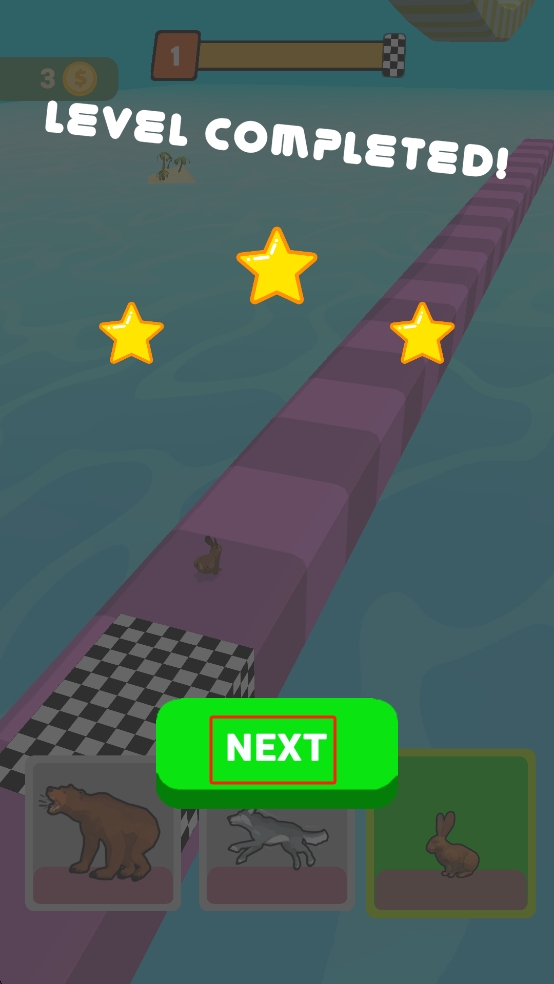 3、關(guān)卡完成后,界面顯示LEVEL COMPLETED,此時(shí)點(diǎn)擊綠色的NEXT按鈕,即可進(jìn)入下一個(gè)關(guān)卡繼續(xù)游戲。
