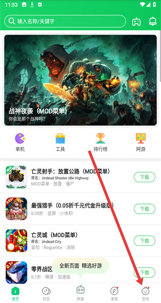 1、可以通過點擊葫蘆俠修改器首頁下的空間按鈕,進(jìn)入我的空間。