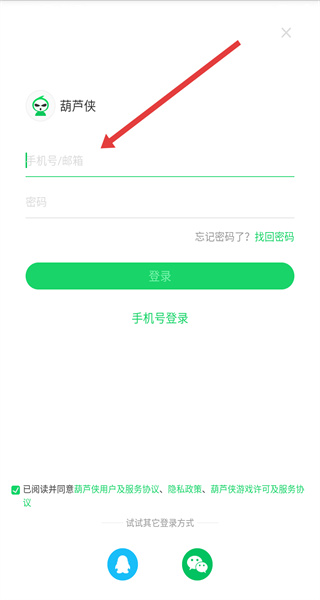 3、在跳轉(zhuǎn)到登錄頁面中,可以點擊上方輸入框,依次填寫手機號和登錄密碼信息。