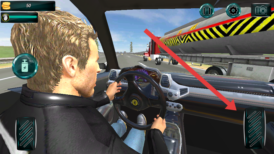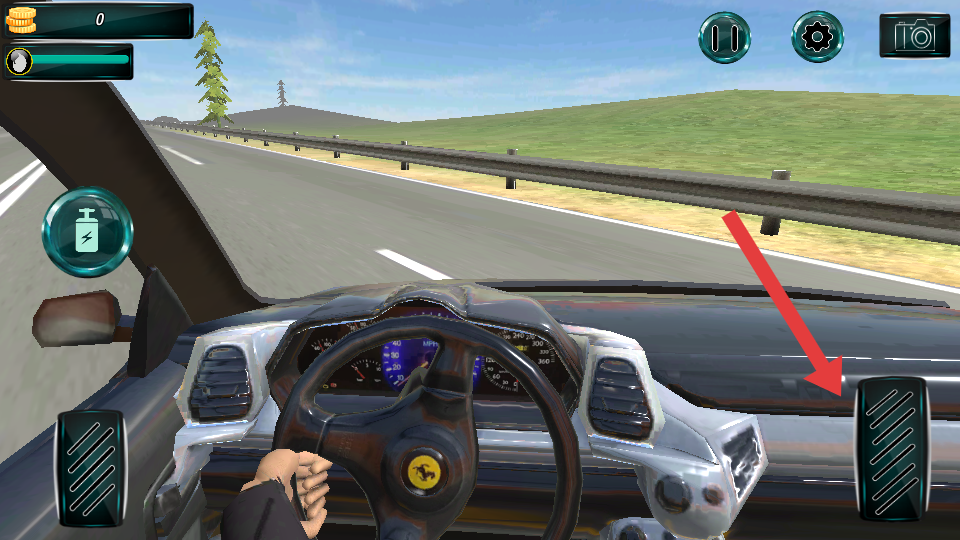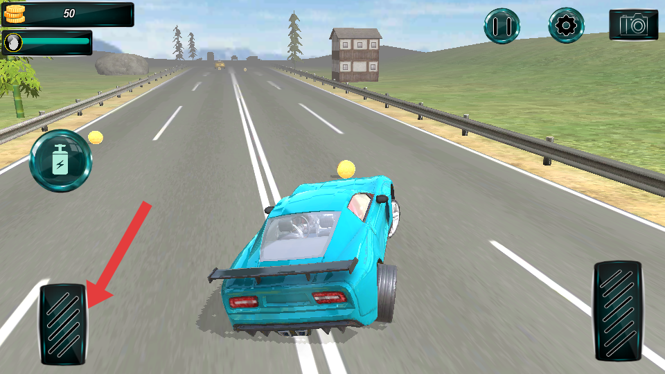 1、進(jìn)入游戲,選車輛如藍(lán)色的跑車,點(diǎn)擊油門鍵的左右側(cè)黑色按鍵起步,沿公路行駛,避開對向大車。