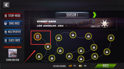 2、18條專業(yè)級賽道橫跨6種地理環(huán)境,包含城市CBD、海濱公路等場景,每條賽道設(shè)有5個以上道具刷新點。