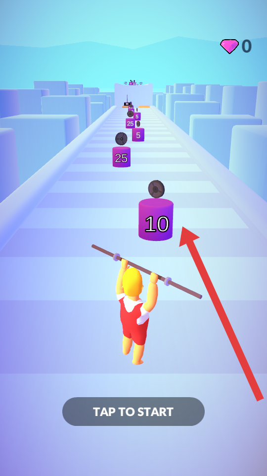 1、點(diǎn)擊TAP TO START開(kāi)跑,左右滑動(dòng)屏幕,控制角色躲避障礙,優(yōu)先撞紫色圓柱數(shù)字越大越好。
