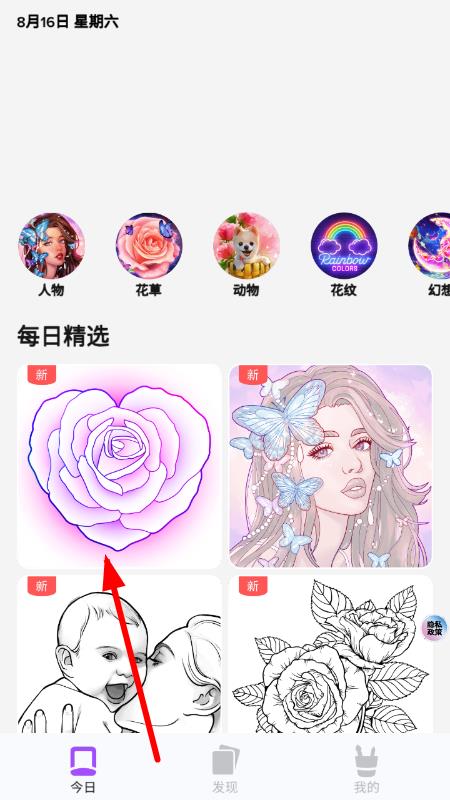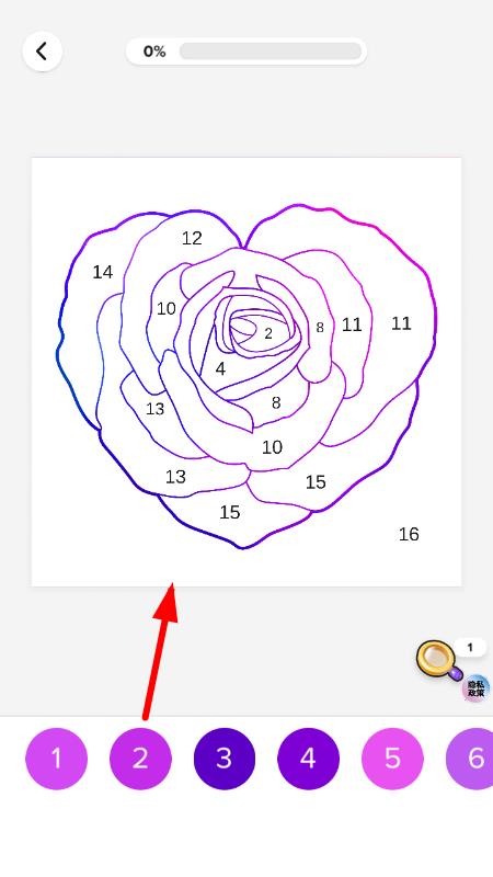 2、根據圖案上的線條劃分出不同區(qū)域,從調色板中選擇合適的顏色,用手指點擊或滑動進行填充,還能調整畫筆大小來精準涂色,避免顏色超出線條。