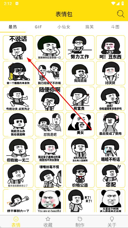 1、打開斗圖表情制作,進入表情頁,瀏覽最熱,GIF等分類下的海量表情包,遇到喜歡的可直接選用斗圖。
