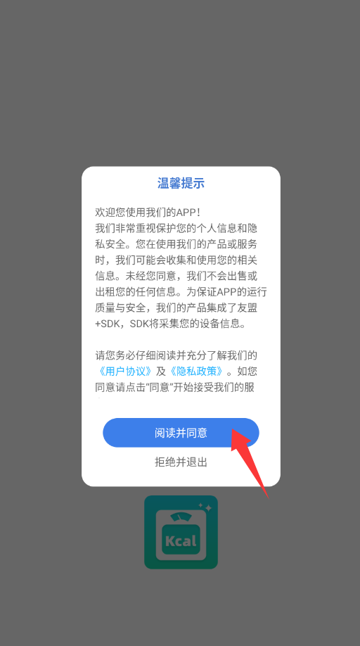 1、點(diǎn)擊溫馨提示里的閱讀并同意。