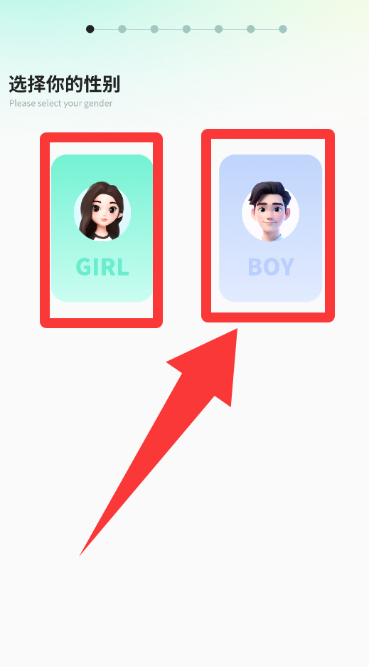 2、請選擇你的性別,點(diǎn)擊紅色箭頭BOY。