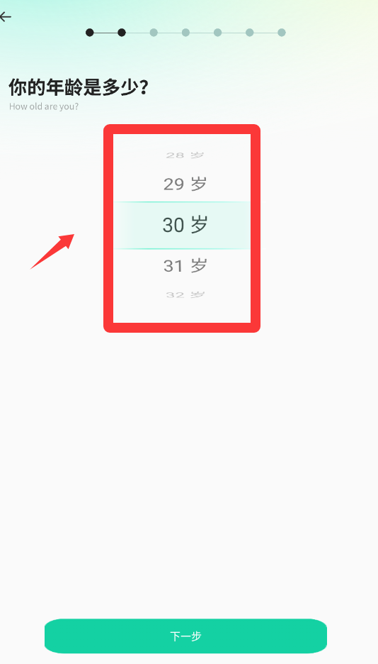 3、你的年齡是多少?紅色框框那里可以滾動(dòng)選多少歲。