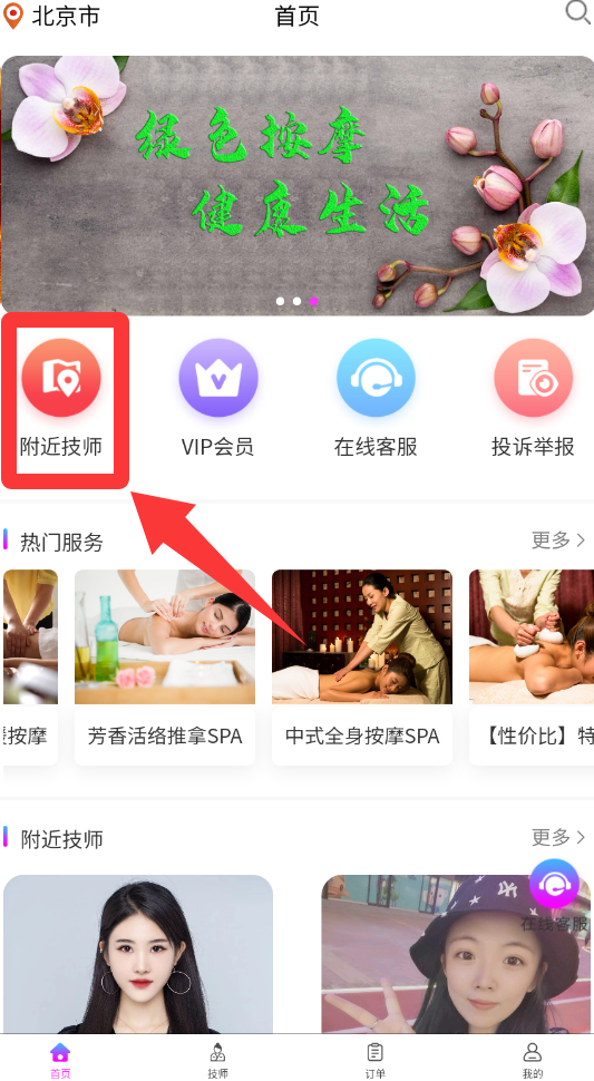 1、首次使用需授權(quán)位置信息,系統(tǒng)會根據(jù)定位智能推薦附近可預約的技師,建議用戶完善個人資料和健康問卷,幫助平臺推薦更符合需求的服務項目和技師人選。