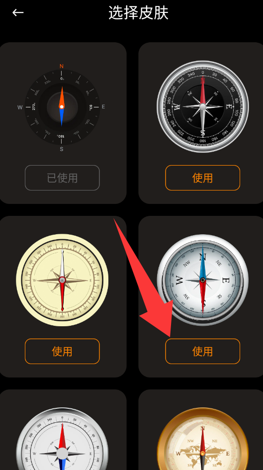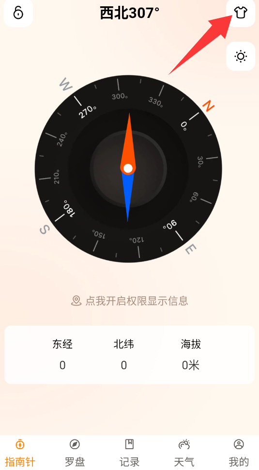 2、點(diǎn)擊紅色箭頭哪里的衣服,可以給指南針換皮膚。
