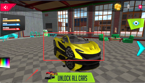 3、車庫(kù)內(nèi)瀏覽20余款特制車型,根據(jù)賽道特性挑選適合的越野車或特技車。