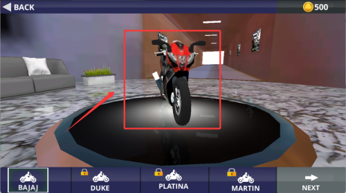 1、進入車庫界面瀏覽多款機車,根據(jù)性能參數(shù)選擇適合的座駕。