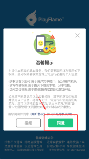 1、啟動(dòng)游戲后確認(rèn)用戶協(xié)議,進(jìn)入主菜單界面。