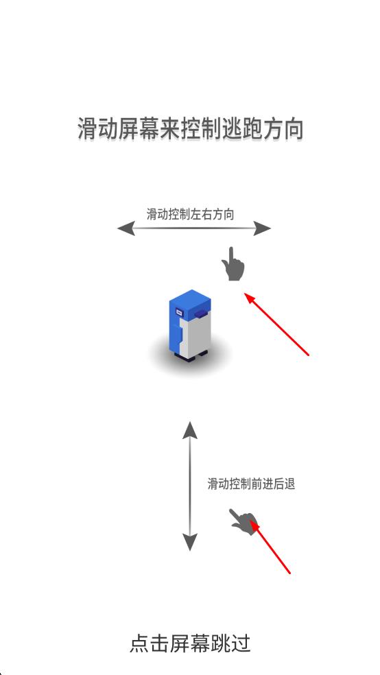 1、滑動(dòng)屏幕控制角色左右轉(zhuǎn)向、前后移動(dòng),規(guī)劃逃亡路線,避開敵人與場(chǎng)景障礙,開啟逃脫進(jìn)程。