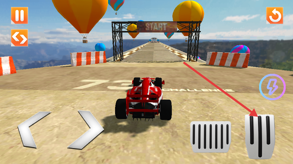 1、通過左右虛擬按鍵控制方向,長按加速鍵觸發(fā)氮氣推進系統(tǒng)。