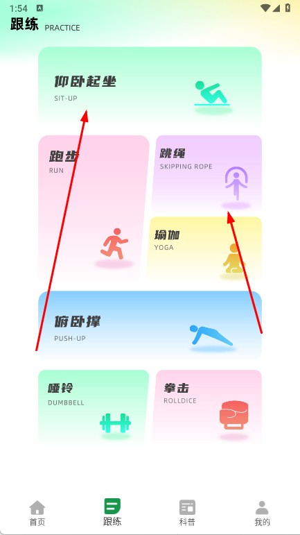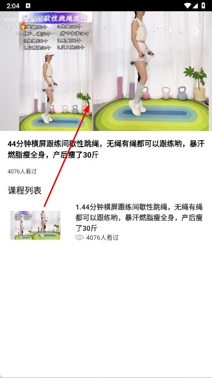 2、切換至跟練頁,挑選運(yùn)動(dòng)類型,以跳繩為例,點(diǎn)擊進(jìn)入對應(yīng)課程,跟隨視頻實(shí)時(shí)鍛煉,高效運(yùn)動(dòng)。