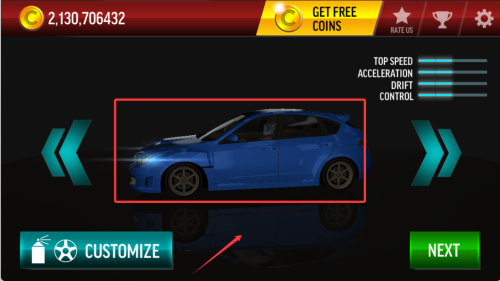2、進(jìn)入車庫(kù)瀏覽20余款定制跑車,根據(jù)性能參數(shù)與外觀偏好選擇參賽車輛。
