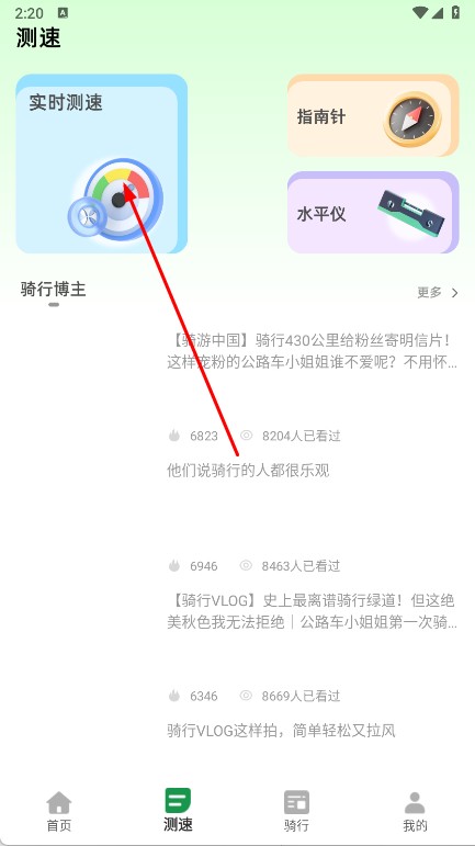 3、利用騎行記記錄行程,借助指南針,老黃歷等工具輔助騎行,通過瀏覽騎行博主內(nèi)容,學(xué)習(xí)專業(yè)經(jīng)驗,讓騎行更有趣、高效。