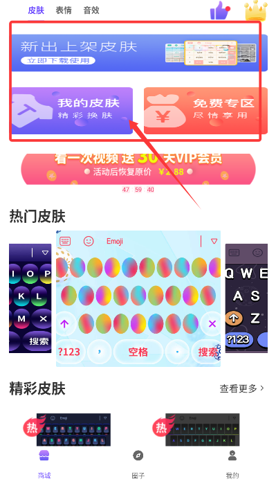 1、進(jìn)入應(yīng)用后,瀏覽皮膚商城首頁,可查看最新上架、限免專區(qū)。