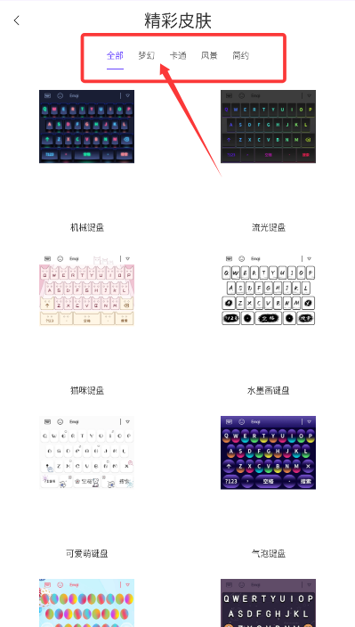 4、確認(rèn)選擇后點(diǎn)擊應(yīng)用按鈕,可立即更換鍵盤主題皮膚樣式。