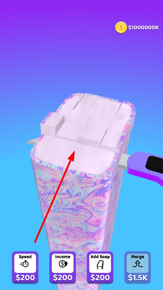 1、操作節(jié)奏把控: 初期手動高頻點擊,借連續(xù)切割觸發(fā)連擊特效,讓單刀收益倍增;中期解鎖自動模式后,定時手動補切肥皂中心區(qū)域,避免碎塊堆積影響后續(xù)切割效率 。