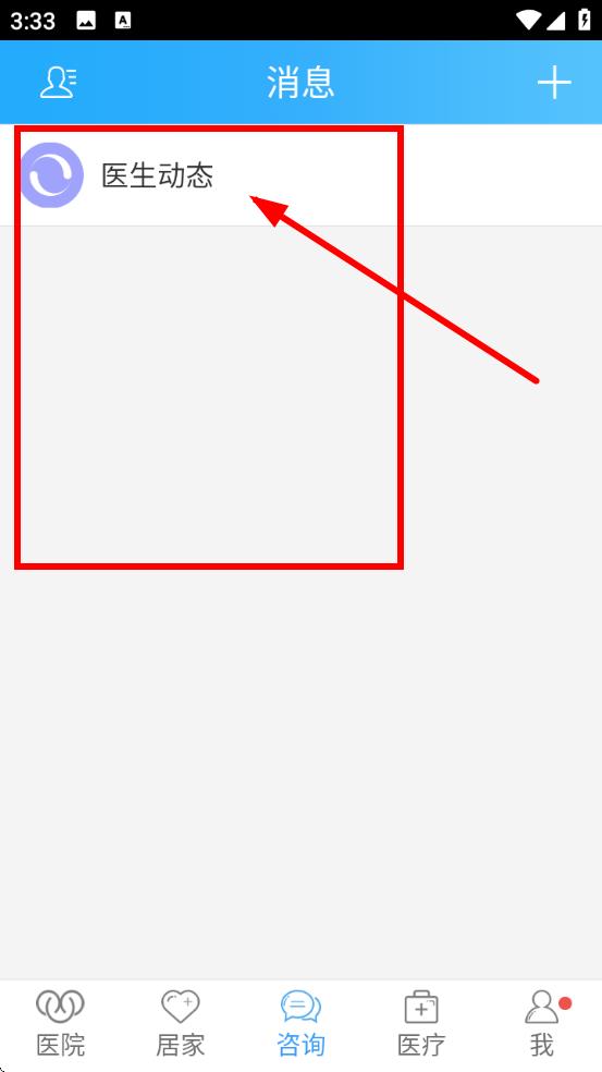 3、在咨詢界面,點擊【醫(yī)生動態(tài)】,可查看醫(yī)生發(fā)布的動態(tài)信息,了解醫(yī)療知識醫(yī)院資訊內(nèi)容。