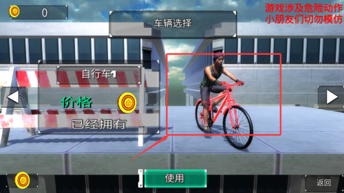 3、在車輛庫中瀏覽各類山地自行車,根據(jù)賽道特點挑選最適合的車型進行比賽。