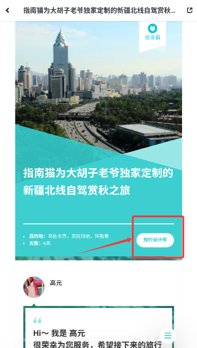 3、頁(yè)面底部點(diǎn)擊定制服務(wù),即可跳轉(zhuǎn)至專業(yè)旅行顧問預(yù)約界面。