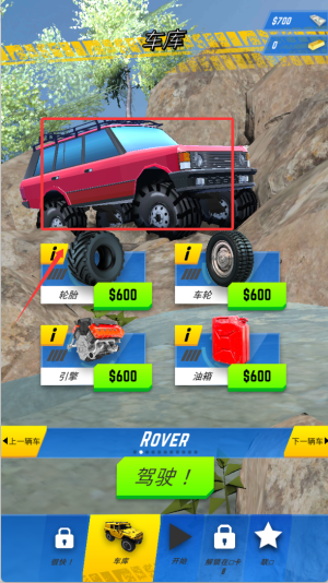 4、進(jìn)入車庫挑選心儀座駕,不同車型具備獨(dú)特的攀爬能力與減震性能。