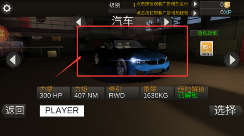 2、車庫系統(tǒng)提供數(shù)十款精心建模的跑車,根據(jù)性能參數(shù)挑選心儀座駕。