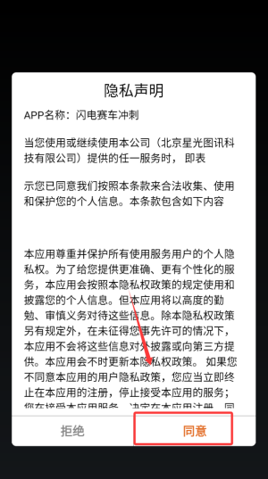1、確認(rèn)用戶協(xié)議后進(jìn)入游戲主界面開(kāi)啟極速之旅。
