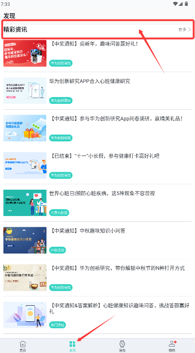 4、在發(fā)現(xiàn)頁(yè)面的資訊專欄,可閱讀健康科普文章,點(diǎn)擊查看更多完整內(nèi)容。