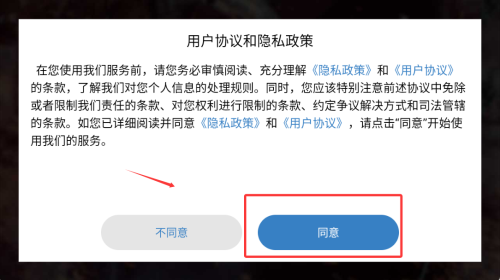 1、首次啟動需確認用戶協(xié)議條款,勾選同意選項后自動跳轉(zhuǎn)至游戲主界面。