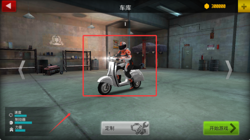 3、進入車庫界面瀏覽各款機車,左右滑動查看詳細參數(shù),選定座駕后確認。