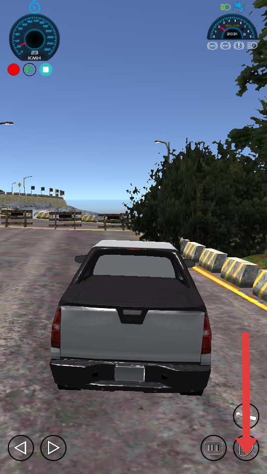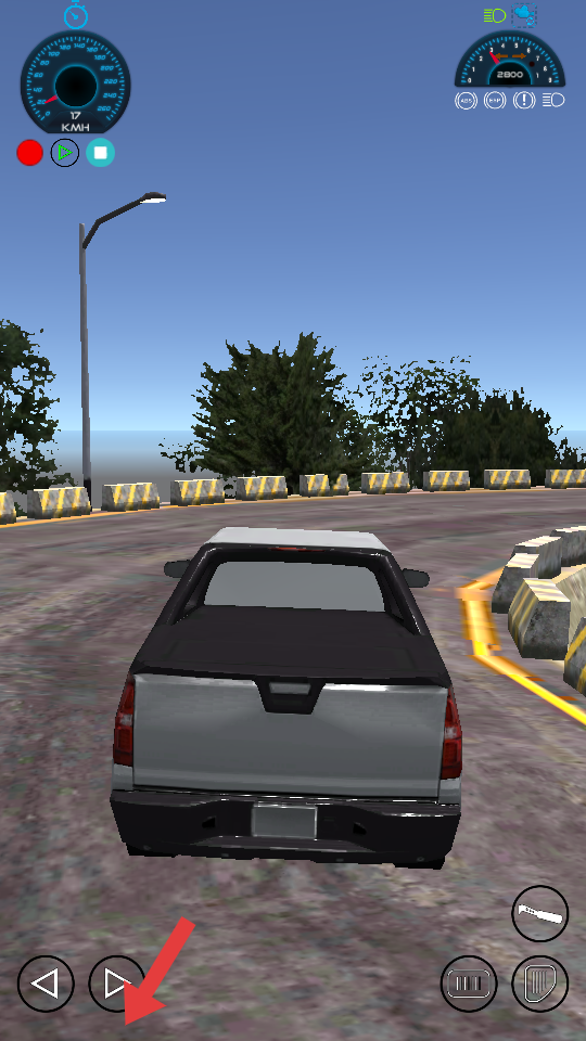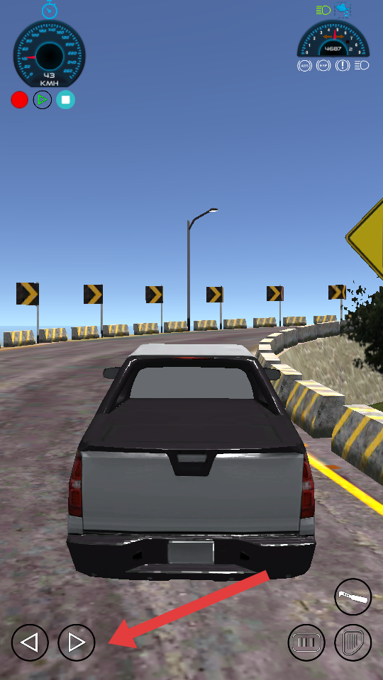 1、進(jìn)入游戲,熟悉左下角方向按鍵前進(jìn)、后退,點(diǎn)擊綠色啟動(dòng)按鈕,操控皮卡車起步,適應(yīng)駕駛操作。