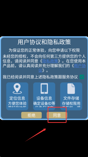 1、首次啟動(dòng)需閱讀并確認(rèn)用戶協(xié)議條款,勾選同意選項(xiàng)后自動(dòng)跳轉(zhuǎn)至主界面。