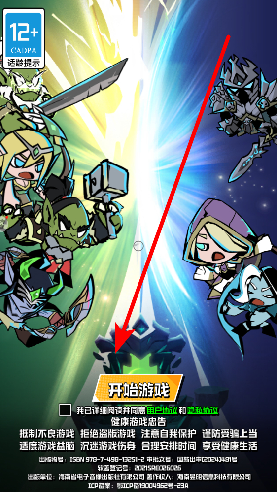 1、進入游戲,勾選同意協(xié)議后點擊開始游戲,開啟冒險,首步需選英雄,如推薦的亡靈游俠,其彈道技能可發(fā)射穿透箭矢攻擊敵人,適配初期戰(zhàn)斗。