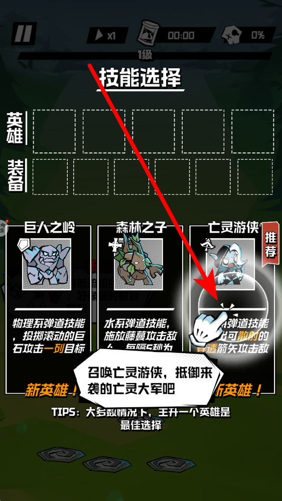 3、戰(zhàn)斗中關(guān)注界面提示,依據(jù)敵人波次與強度,靈活調(diào)整攻擊策略,利用英雄技能特性,高效清理亡靈,推進游戲進程,持續(xù)積累戰(zhàn)斗經(jīng)驗。