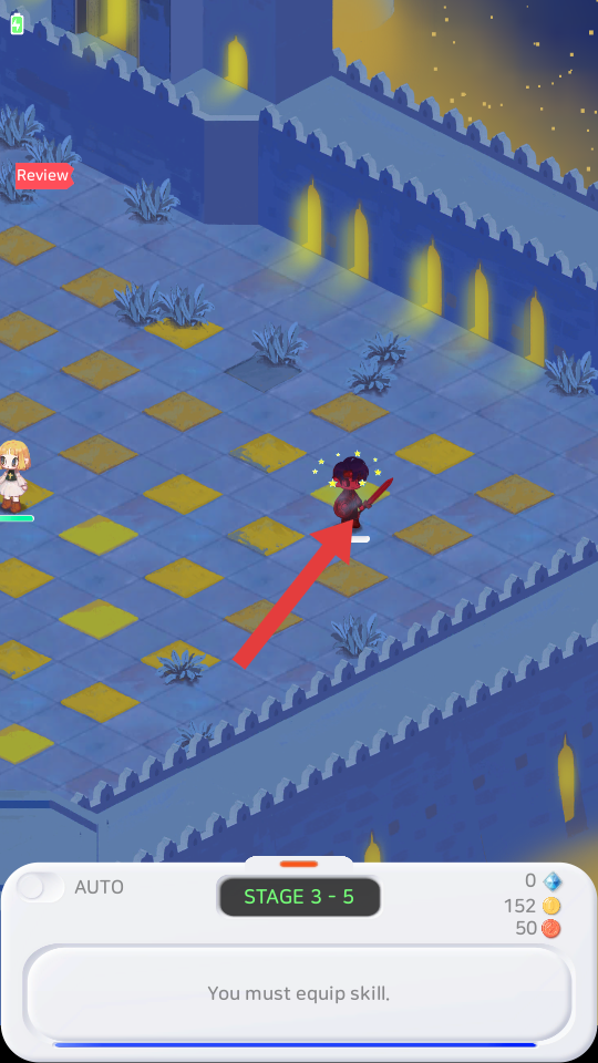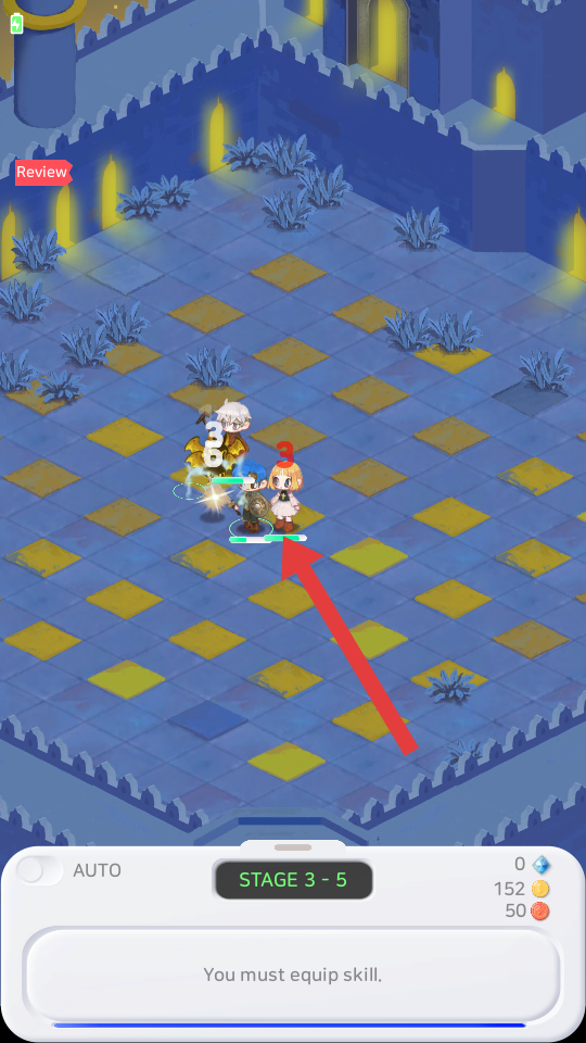 1、進(jìn)入關(guān)卡如3-5,看到提示You must equip skill,返回技能配置界面,給角色裝配攻擊、輔助技能。