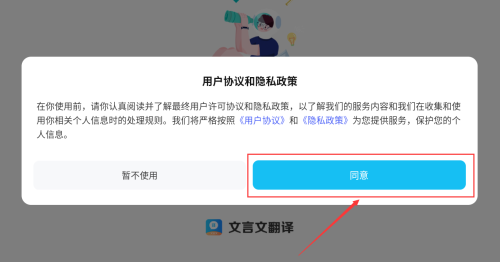1、點(diǎn)擊紅框同意按鈕,確認(rèn)用戶協(xié)議隱私政策。
