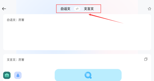 4、點(diǎn)擊紅框雙向箭頭,切換白話文言文模式。