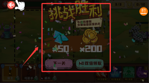 3、打完關(guān)卡記得領(lǐng)獎勵,用來解鎖新武器或升級防御,裝備變強后打高難度關(guān)卡和Boss會輕松不少。