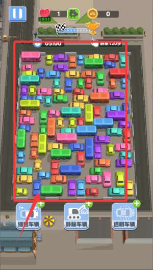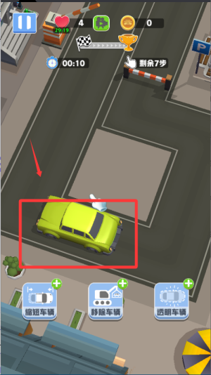 1、開始游戲后先看清楚地圖上所有車輛的位置,找到被堵住的那輛,再一步步挪開擋路的車,騰出通道。