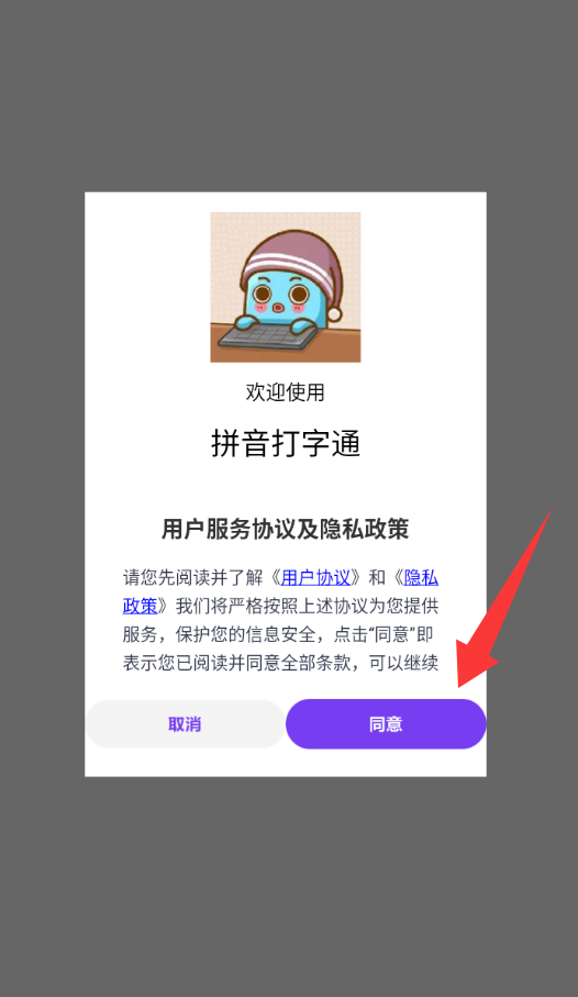 1、點擊用戶服務(wù)及隱私政策里的同意并進入。